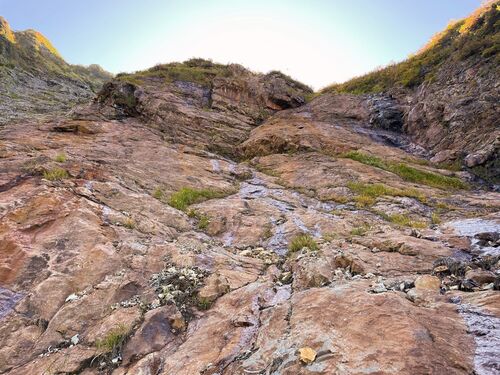 バカでかいスリット堰堤によって無数の真っ黒に朽ちた大木がバラバラ状態になって堰き止められている光景が実におどろおどろしい。左岸から巻いて沢に戻ると川底が優に10mは上がっており、ゴルジュを埋めるお決まりのゴーロになっていた。これが水無川の手前…