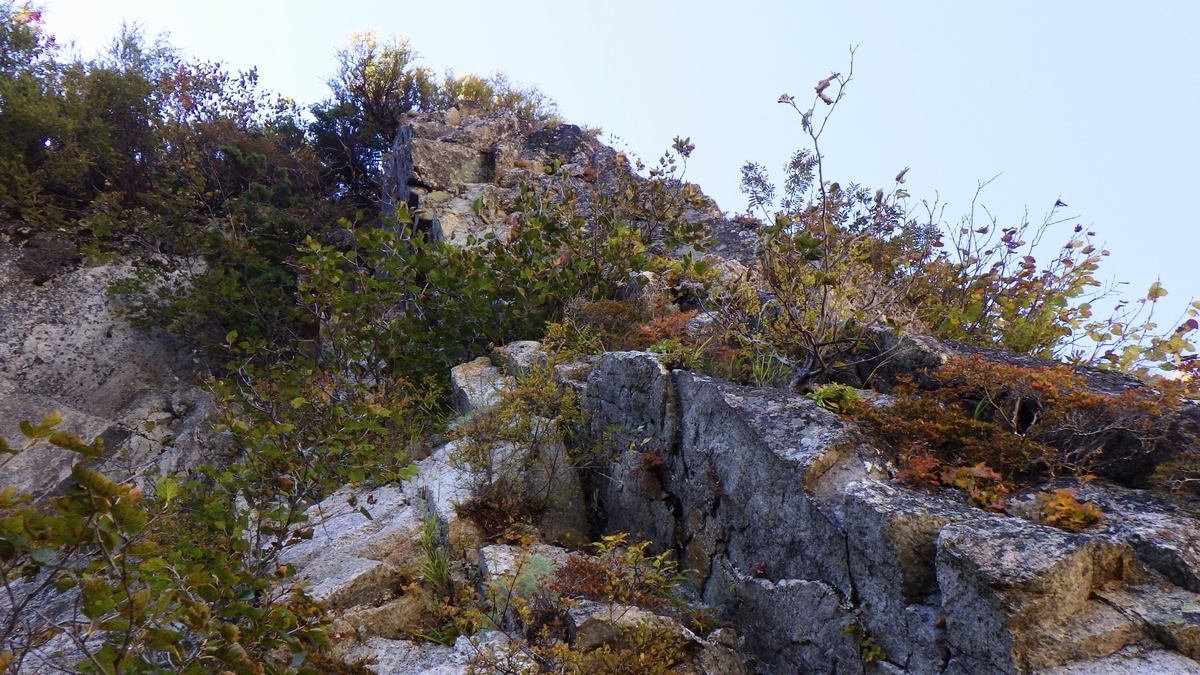 あとはほんの数mの藪混じりの岩をこなせば「山巡稜」だ。しかし、・・