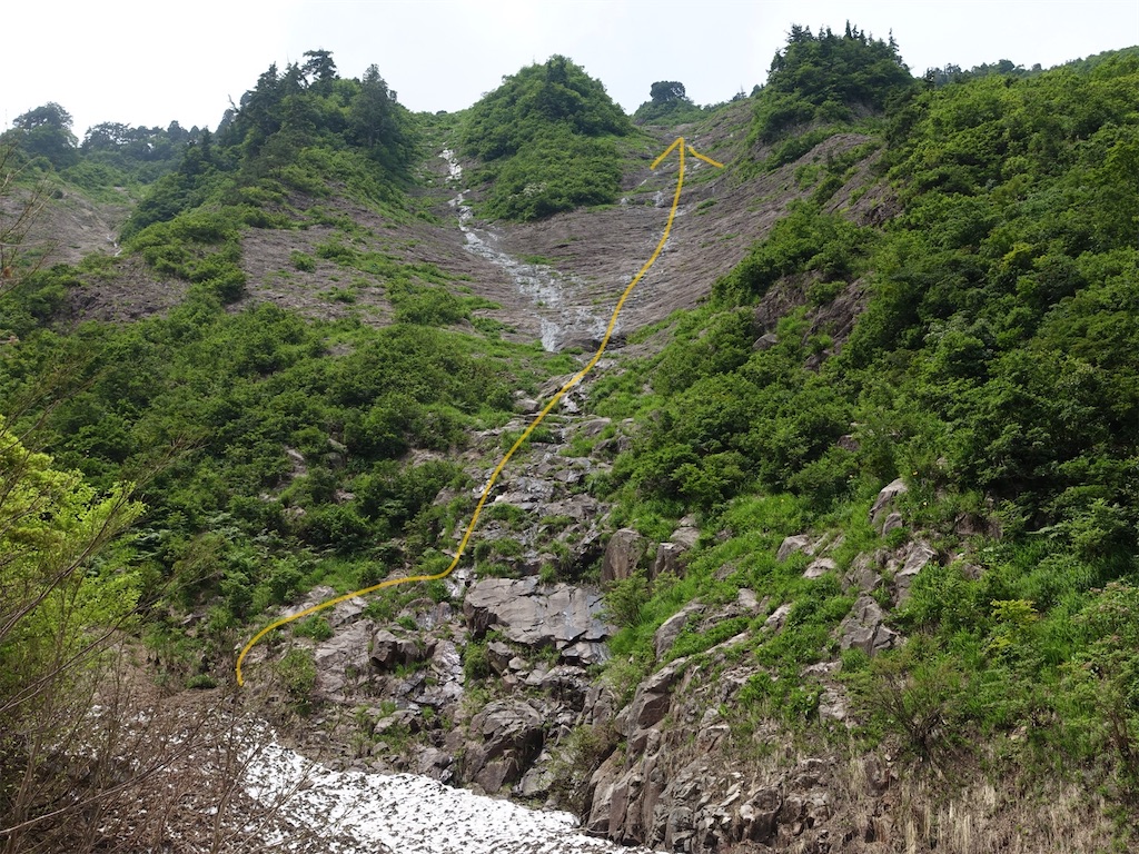 ふふ・・、いいぞ、大ギラ沢左岸のスラブ帯がそこに見える。手持ちの概念図に照らし合わせてみれば、きっとあれば第三スラブだ。順調ではないか。しかし、・・