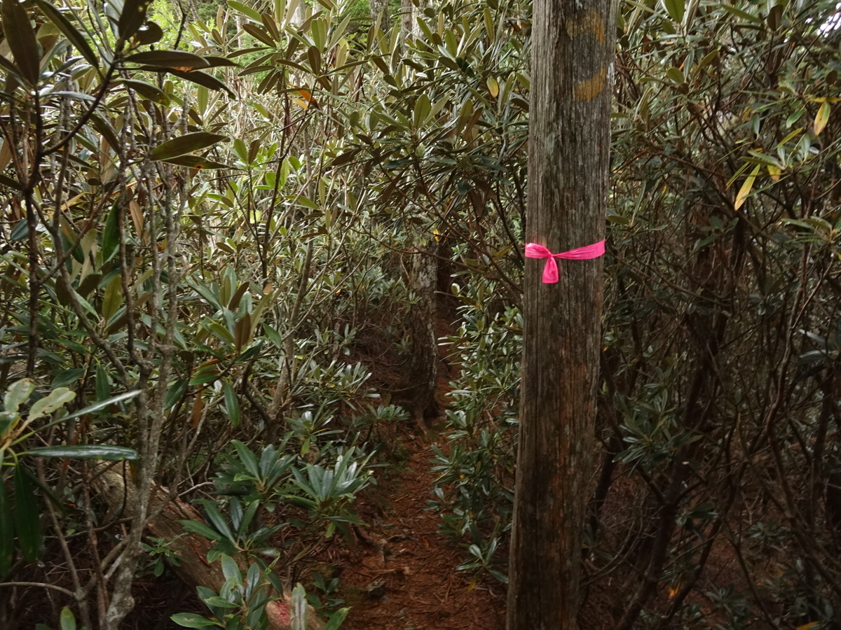 最後は稜線直下の岩壁を右に巻いて鶏冠尾根の登山道に出た。